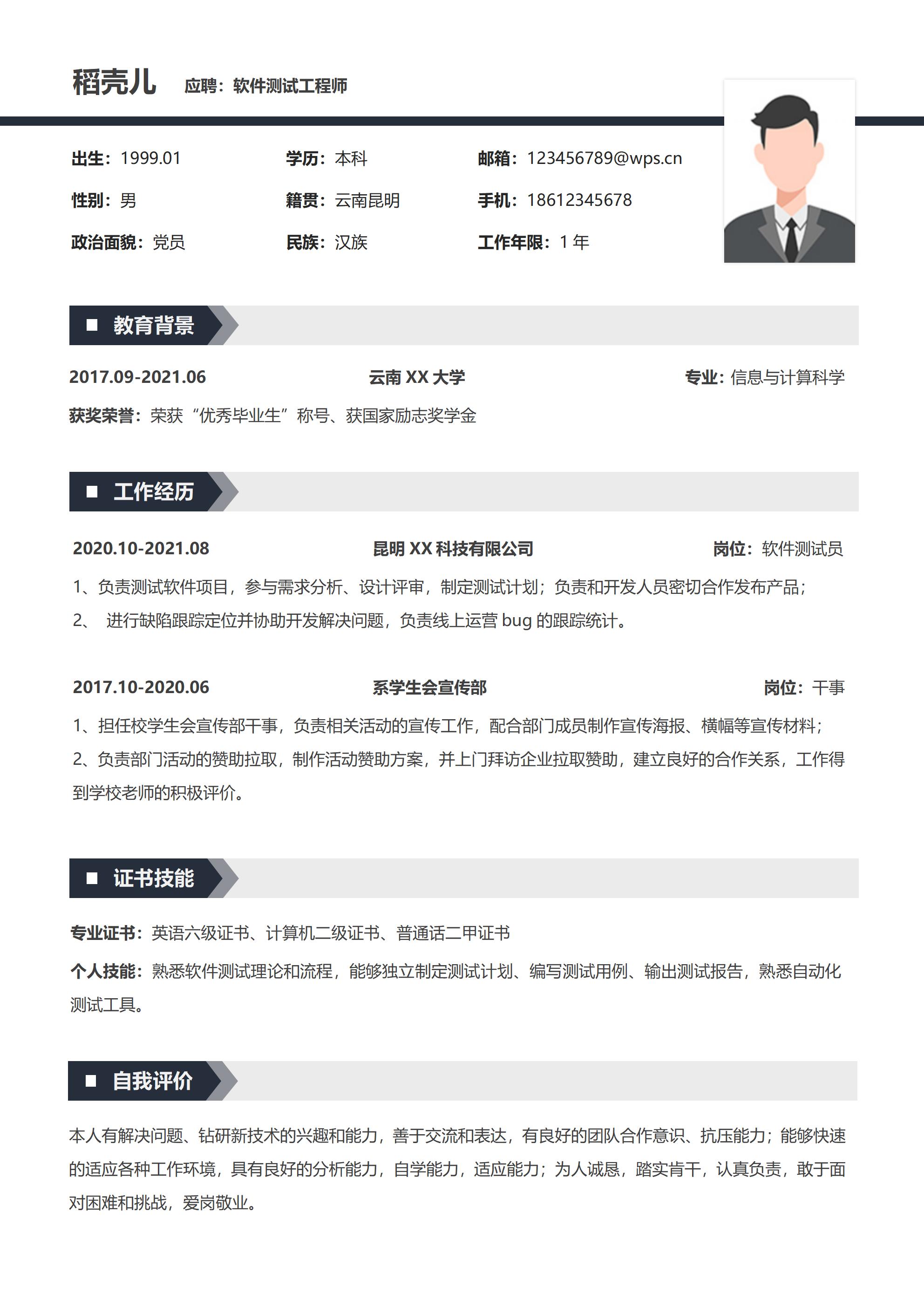 041-简约软件测试工程师简历