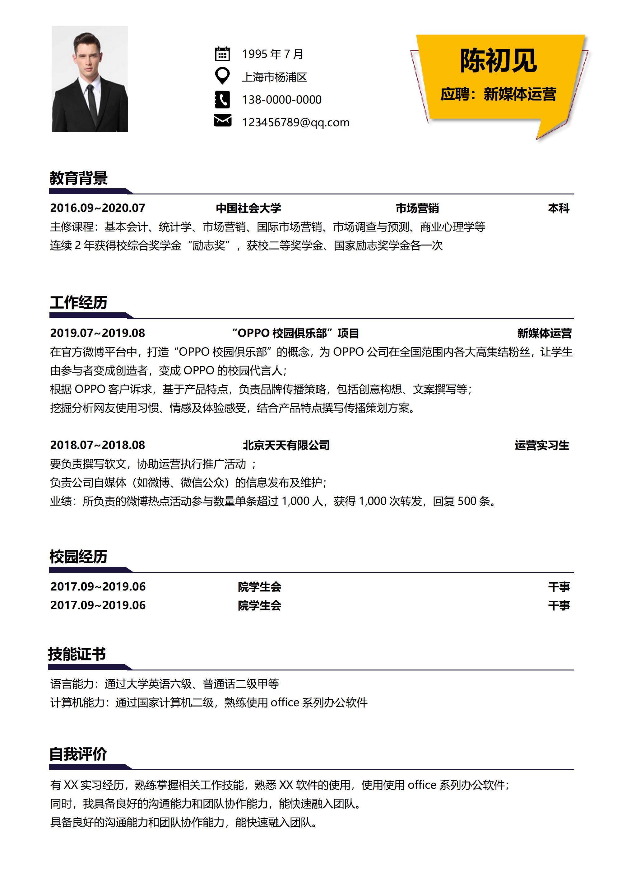 061-商务专业新媒体运营秋招社招简历