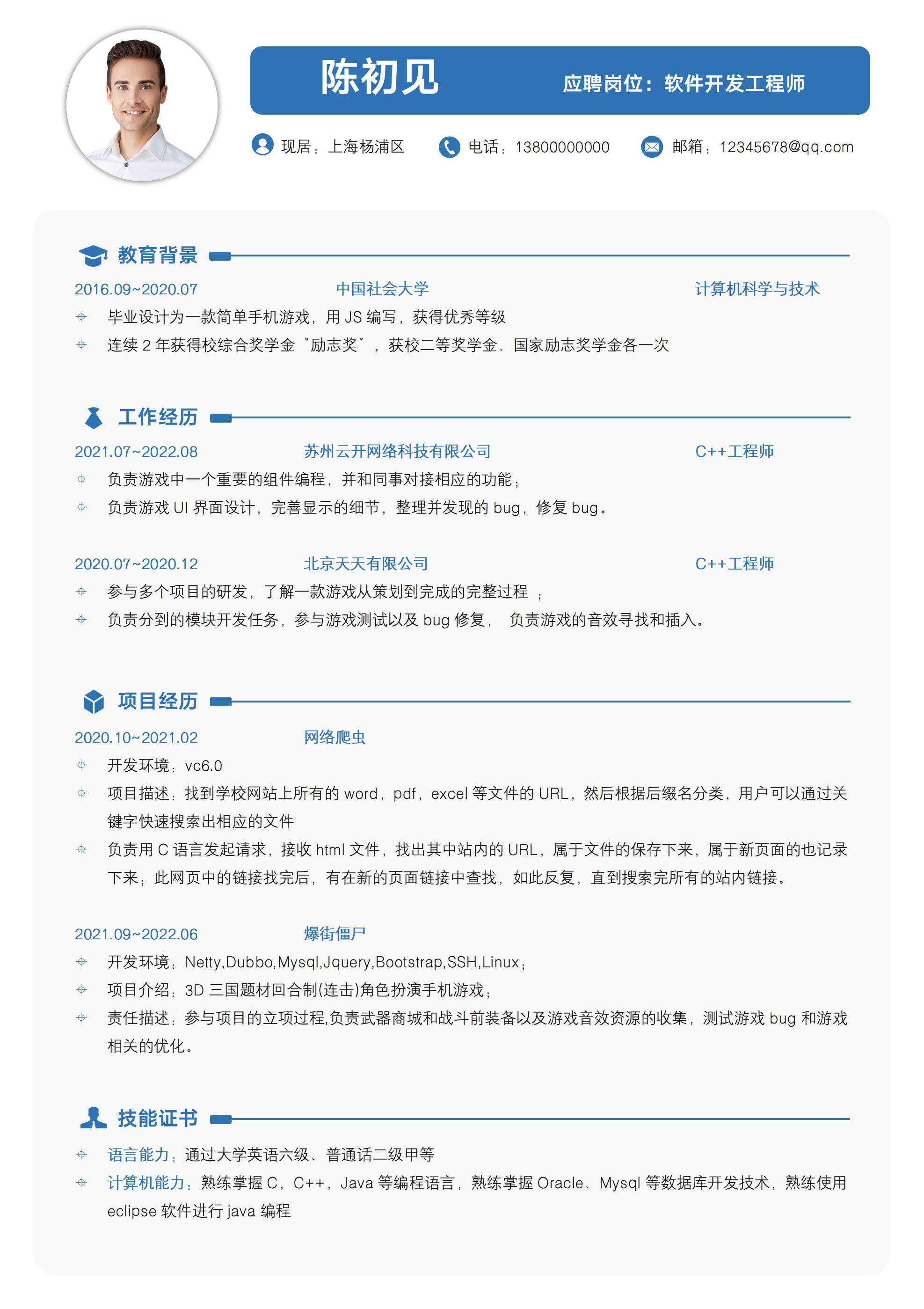 001-c++软件开发工程师应届生程序员简历