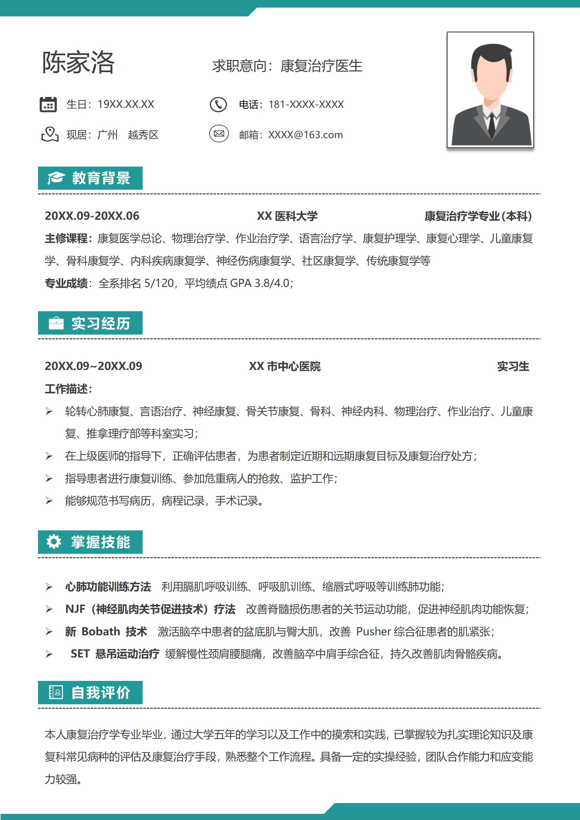 052-康复治疗师求职简历